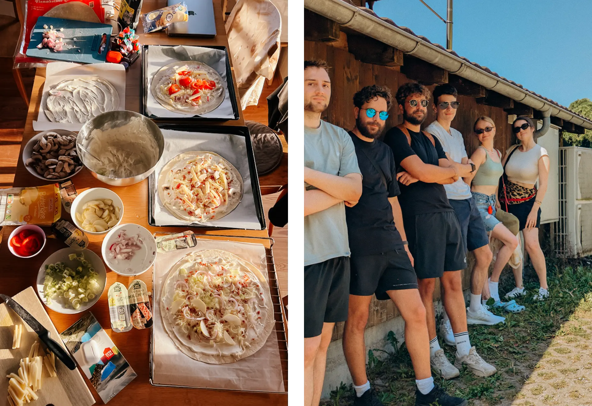 Natürlich gab es auch kleine Geschichten, die in Erinnerung bleiben. Zum Beispiel die verpasste Rigi-Bahn, die uns zu einem unerwarteten Fußmarsch bergauf zwang. Oder die gemeinsamen Kochabende in der Hütte, an denen wir für neun Leute ein improvisiertes Menü auf den Tisch brachten.