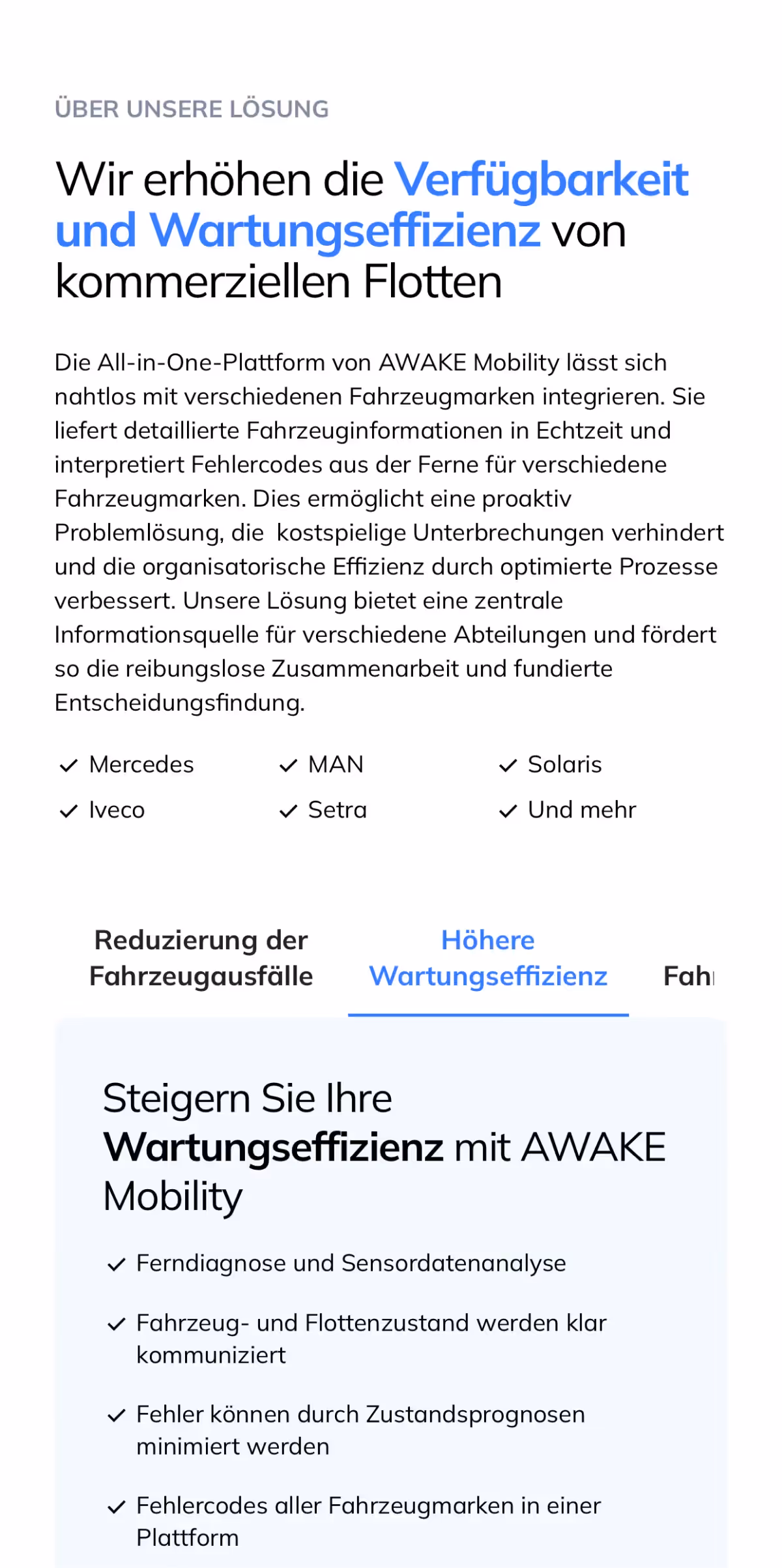 Halbstark stand vor der Aufgabe, die Komplexität der Plattform simpel darzustellen, ohne die technische Tiefe zu verlieren. Dank der Verwendung anschaulicher Grafiken und Bildern war es uns möglich, die Technik von AWAKE Mobility dem Nutzer verständlich zu machen. Mit hellen, einladenden Farben und kleinen Details wirkt die Webseite nicht nur modern sondern auch professionell und passt perfekt zur Marke.