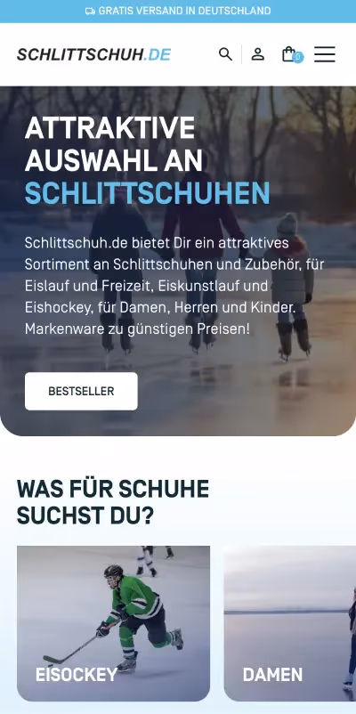 Webseite ansehenIn der Welt des Schlittschuhlaufens offenbart sich nicht nur die Freude an der Bewegung, sondern auch die Faszination für die Kunst auf dem Eis. Bei Schlittschuh.de steht die Vielfalt dieses besonderen Erlebnisses im Mittelpunkt. Mit einer breiten Palette an Schlittschuhen für Jung und Alt sollen nicht nur Produkte angeboten werden, sondern ein Tor zu unvergesslichen Momenten auf dem Eis geöffnen werden. Dabei ist es besnders wichtig, dass dieses reichhaltige Sortiment in einer ansprechenden und benutzerfreundlichen Umgebung präsentiert wird.