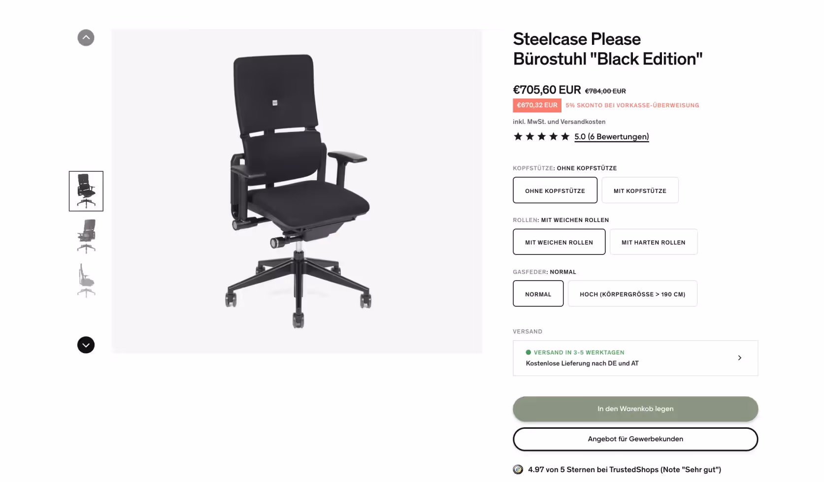 Die Website ist für verschiedene Nutzungsszenarien optimiert: Während Kunden oft mobil über Ads auf die Seite gelangen, findet der eigentliche Kaufprozess meist am Desktop statt. Deshalb haben wir beide Erlebnisse perfekt aufeinander abgestimmt und für jeden Touchpoint die beste User Experience geschaffen.