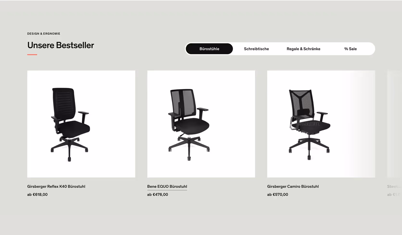 Webseite ansehenFür workstatt haben wir ein individuelles Shopify Theme entwickelt, das die Exklusivität und Modernität ihrer hochwertigen Büromöbel widerspiegelt. Das Design konzentriert sich auf klare Linien und hochwertige Produktpräsentation, um die Qualität der Möbel optimal zu vermitteln.
